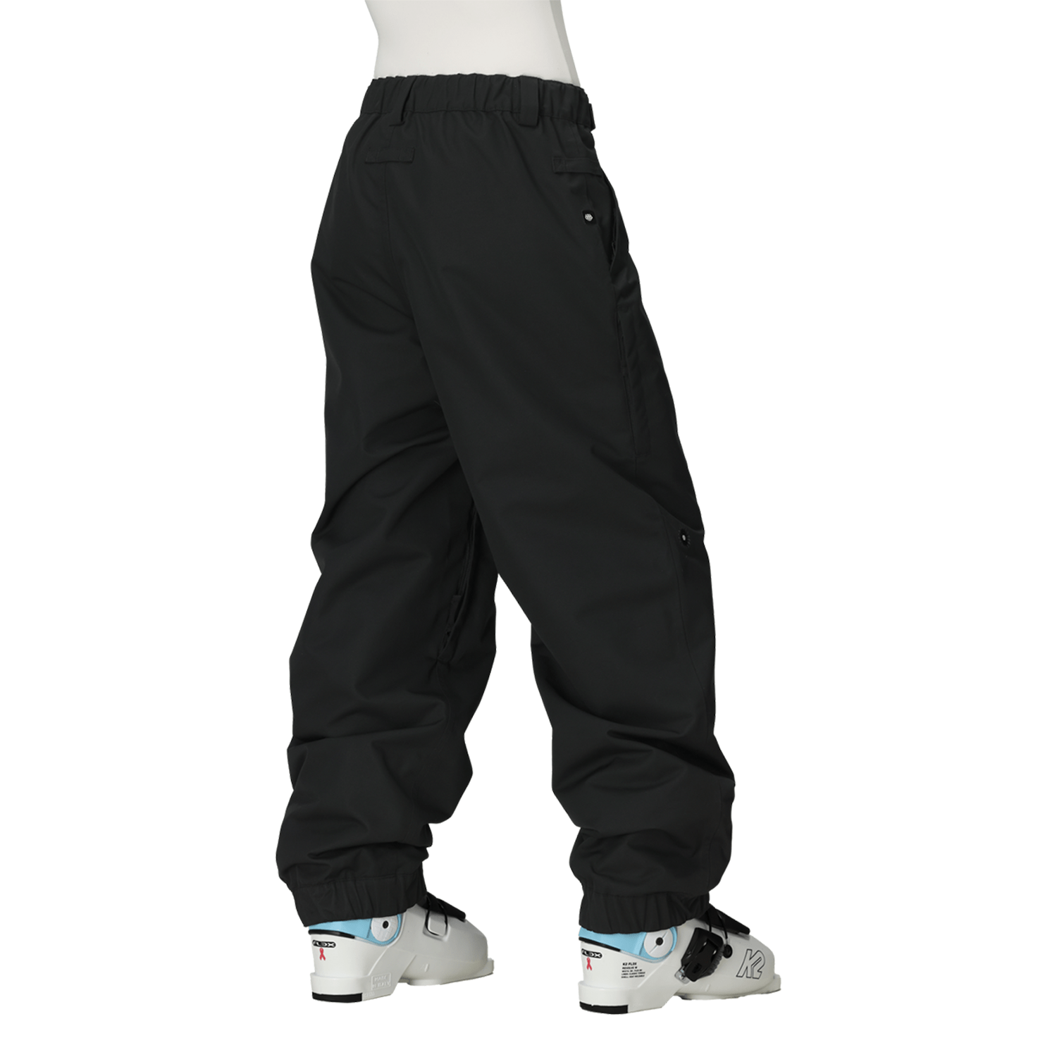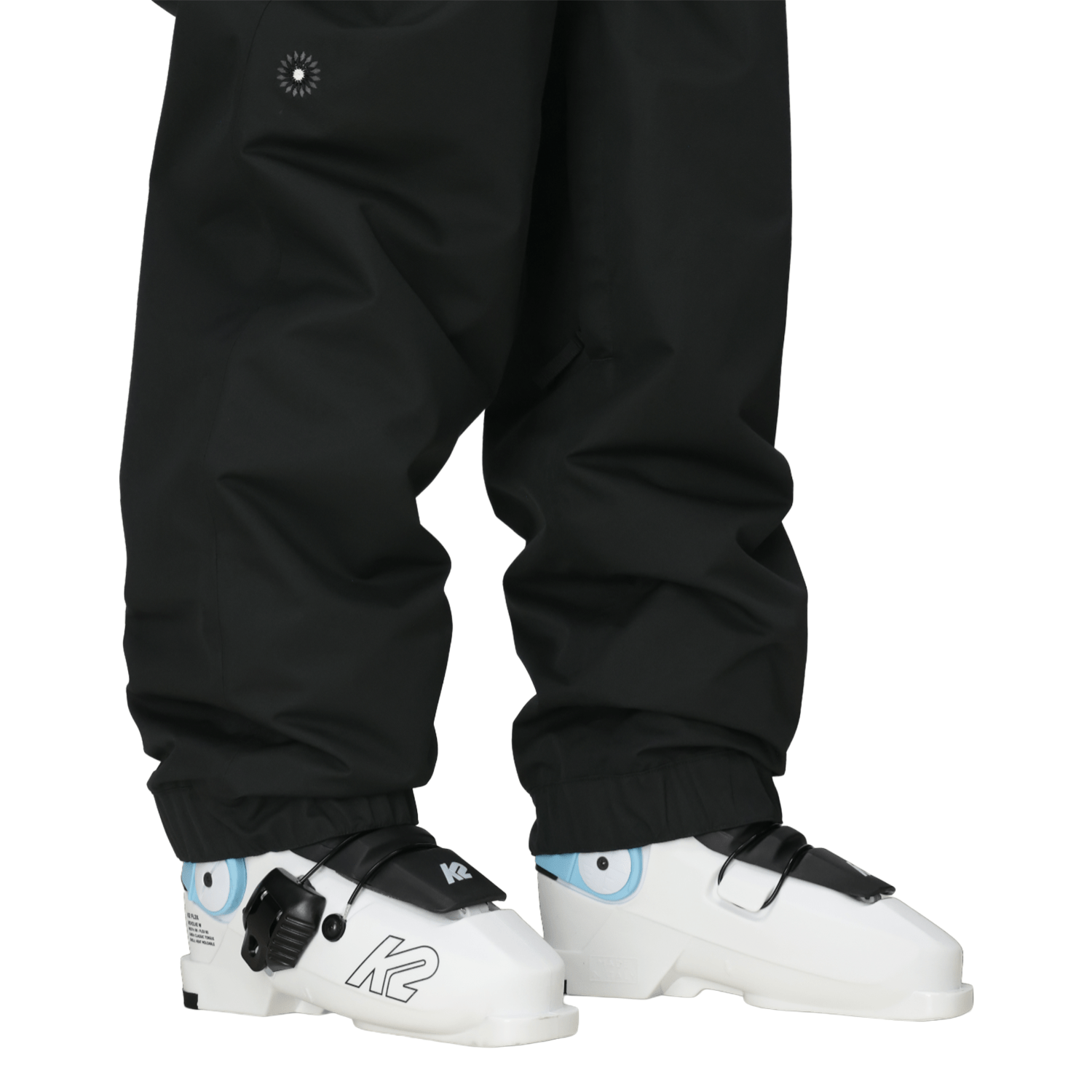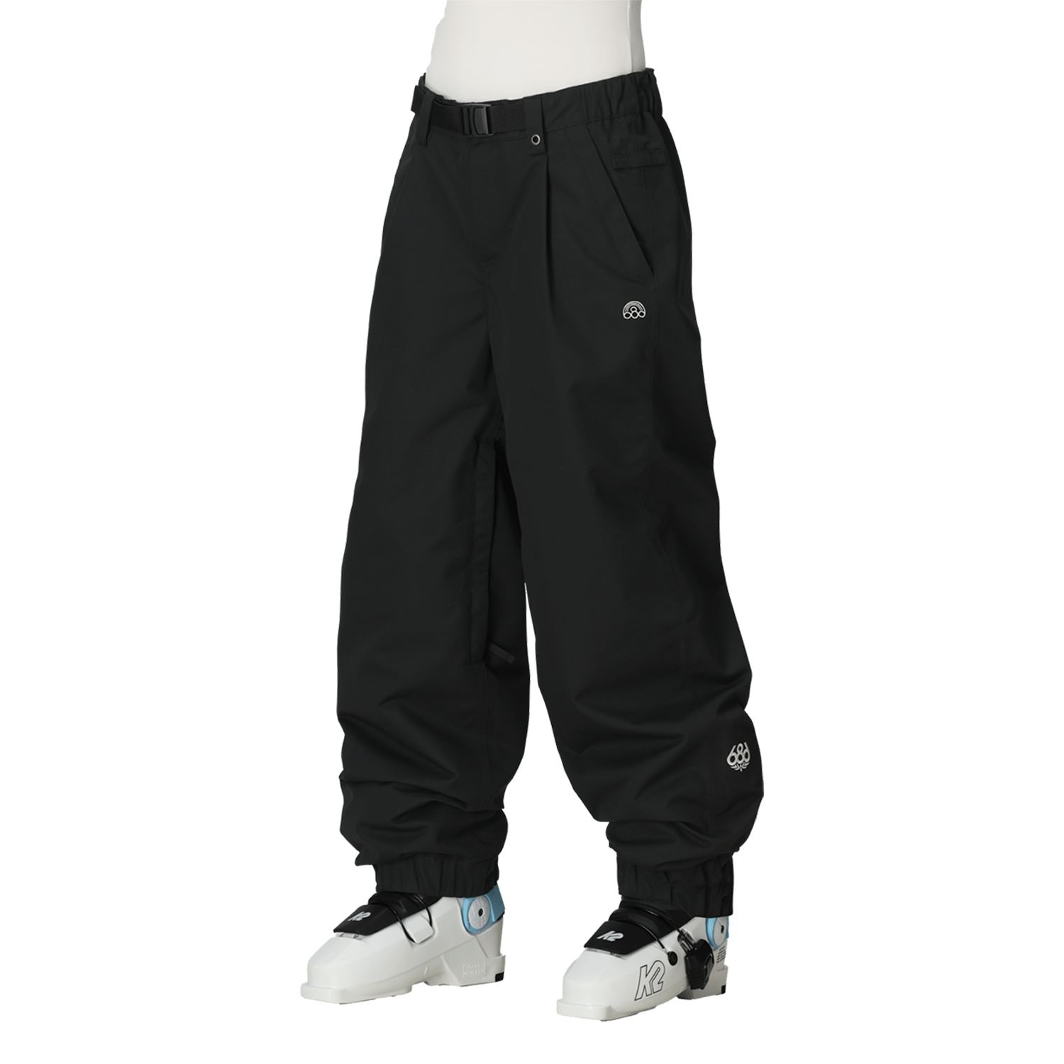 • Extras: 500D bottom hem facing; elastic waist with integrated adjustable webbing belt; boot gaiter with lace hook; lift-ticket eyelet on belt loop