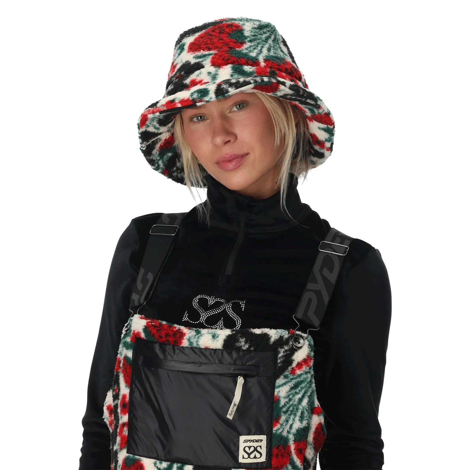 Worn as a functional cold-weather accessory or a statement piece, the Society Fleece Bucket Hat delivers easy warmth with unmistakable personality. The relaxed bucket shape pairs naturally with outerwear kits, while the bold Elsa Grace print pushes it beyond basic headwear. Brand: Spyder. Product: Society Fleece Bucket Hat.