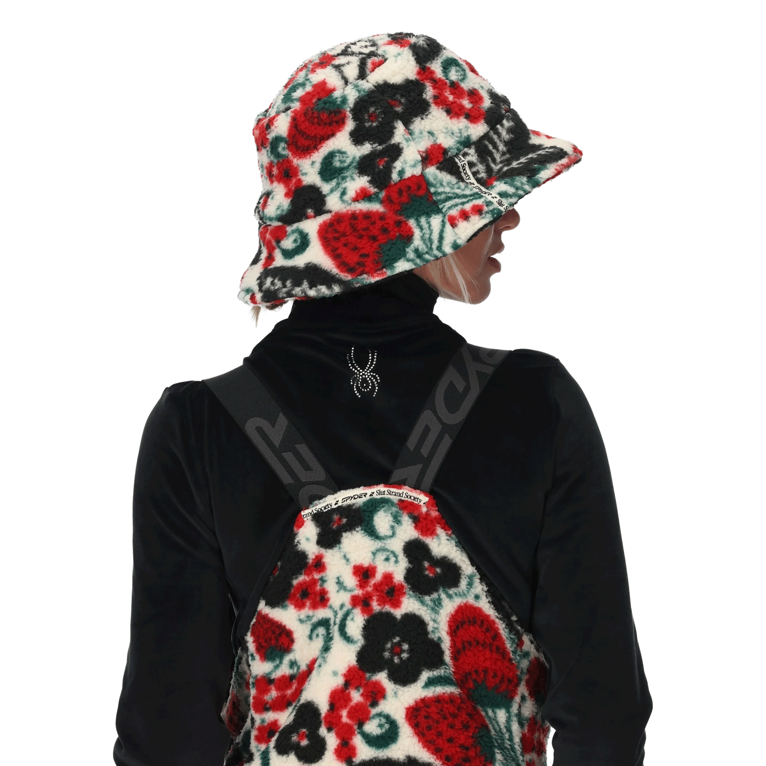 High-pile polyester sherpa fleece sets the tone for warmth, texture, and standout style. The Spyder Society Fleece Bucket Hat uses 100% polyester fleece with a soft, lofty hand and a custom collab print that brings immediate visual punch. Components are produced without PFAS chemicals, keeping materials focused on comfort and cleaner production.