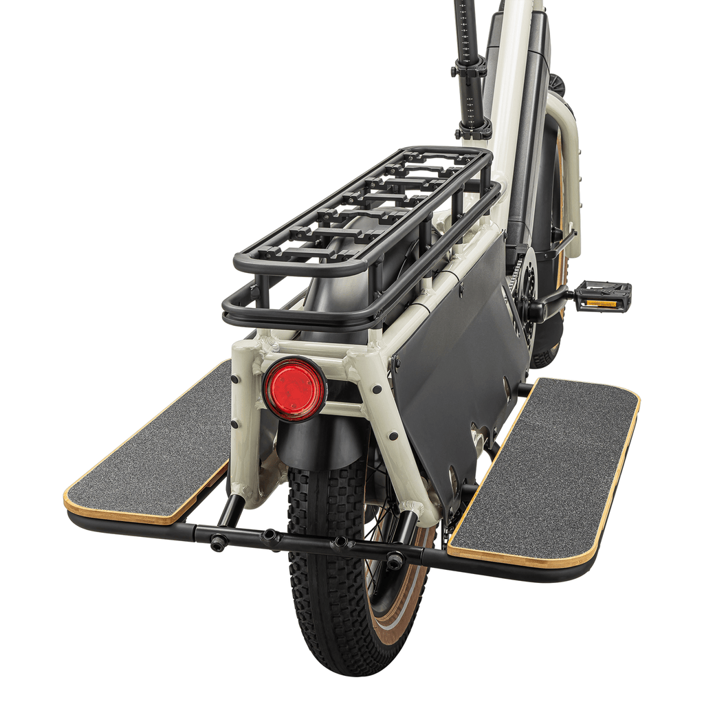 The Specialized Globe LT Running Boards provide stable support for passengers and cargo, ensuring a smooth ride on the Haul LT. Built with a sustainable bamboo platform and a griptape top, these boards offer durability and frictionless compatibility with the bike. With a 66 lbs max capacity per side, the running boards are designed for secure hauling, including all necessary assembly tools.
