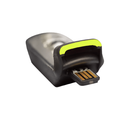 - 340mAh battery recharges via built-in USB tab in two hours (no extra cables needed).