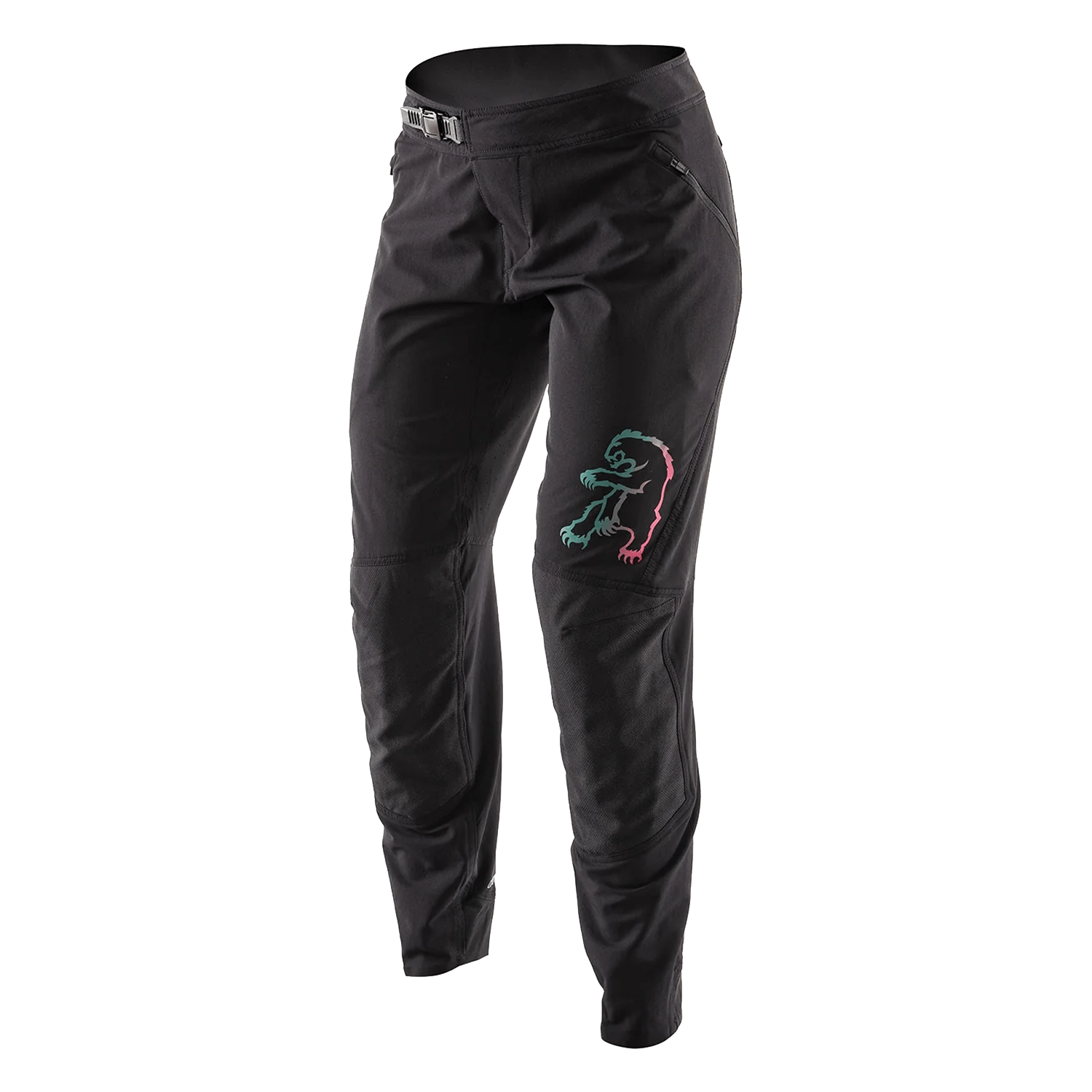 Constructed from durable 4-way stretch fabric with a water-resistant finish, the Chromag Women's Feint Pant delivers unrestricted mobility and abrasion resistance for aggressive riding. A tapered fit with room for kneepads reduces bulk while laser-cut vents and reinforced knees enhance breathability and longevity. Functional details include a ratchet waist closure, hidden pass pocket, and zippered phone stash for streamlined trail utility.