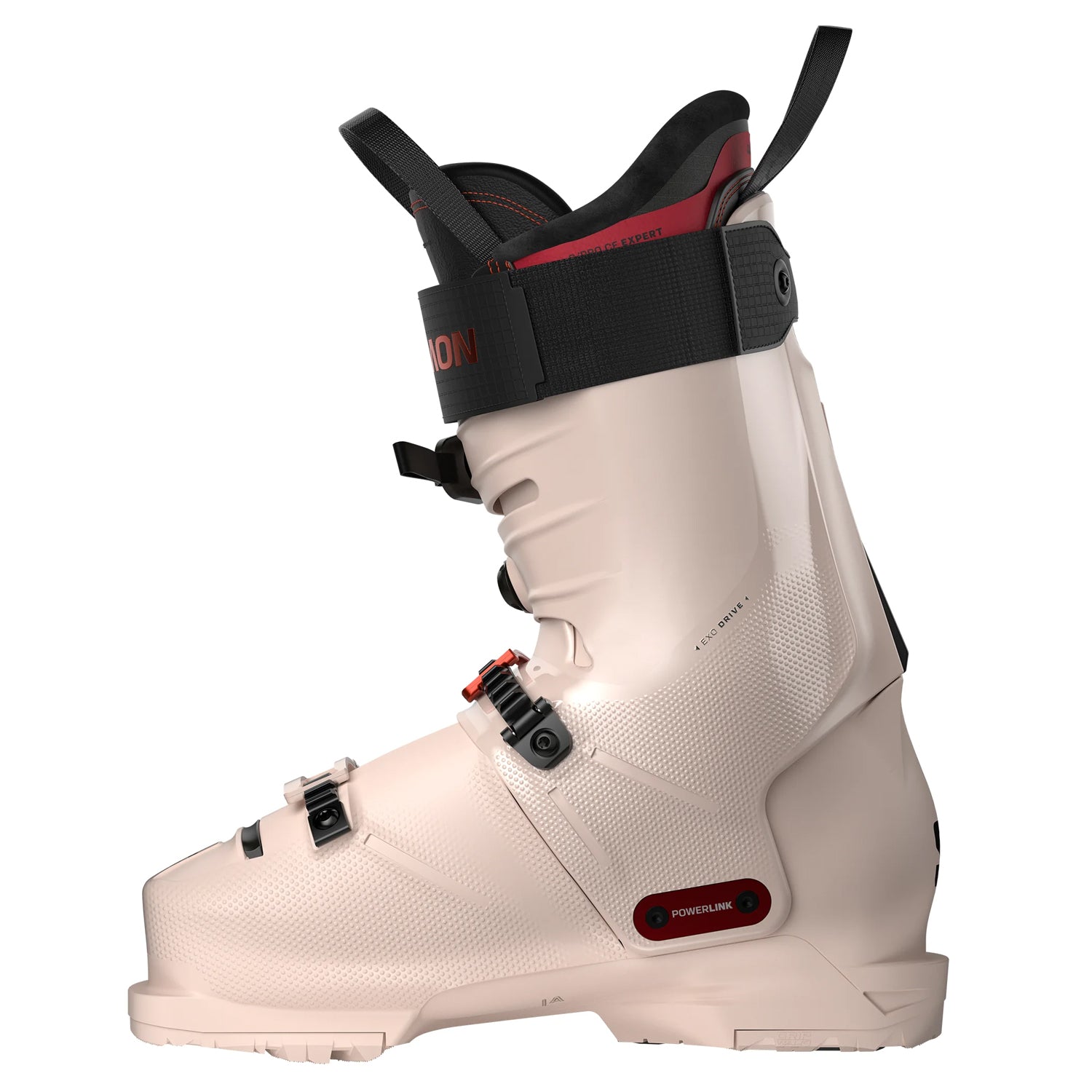 Precision and responsiveness combine in a narrow-fit platform tailored for women seeking controlled, high-performance skiing. A 115 flex rating paired with a 98 mm last ensures direct energy transfer and close contact with the shell, while the cuff-mounted BOA® Fit System allows micro-adjustments for secure heel hold and precise edge control. The ExoDrive™ construction and Powerlink™ lower pivot link the cuff and shell for powerful forward flex and progressive rebound, translating skier input efficiently from tip to tail.