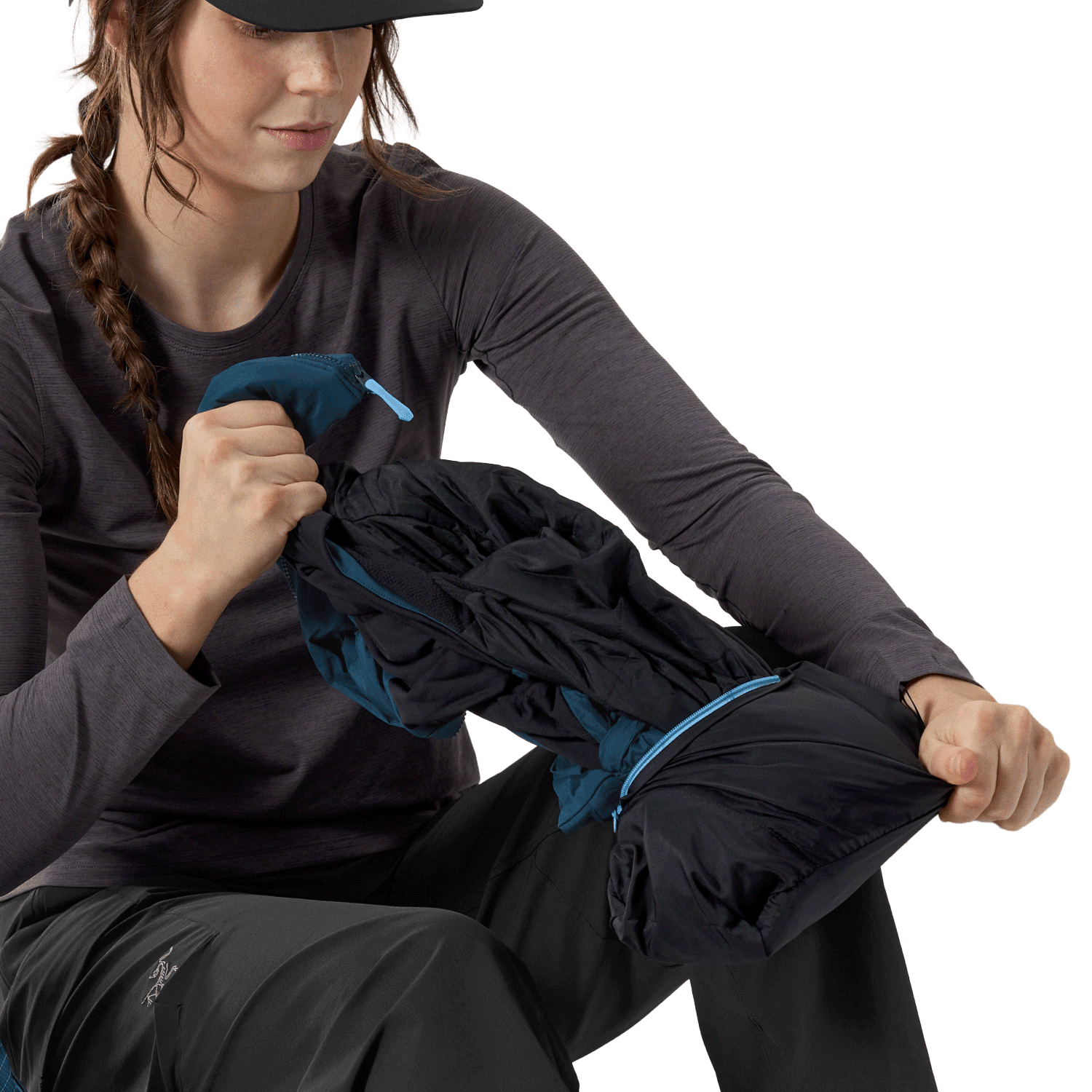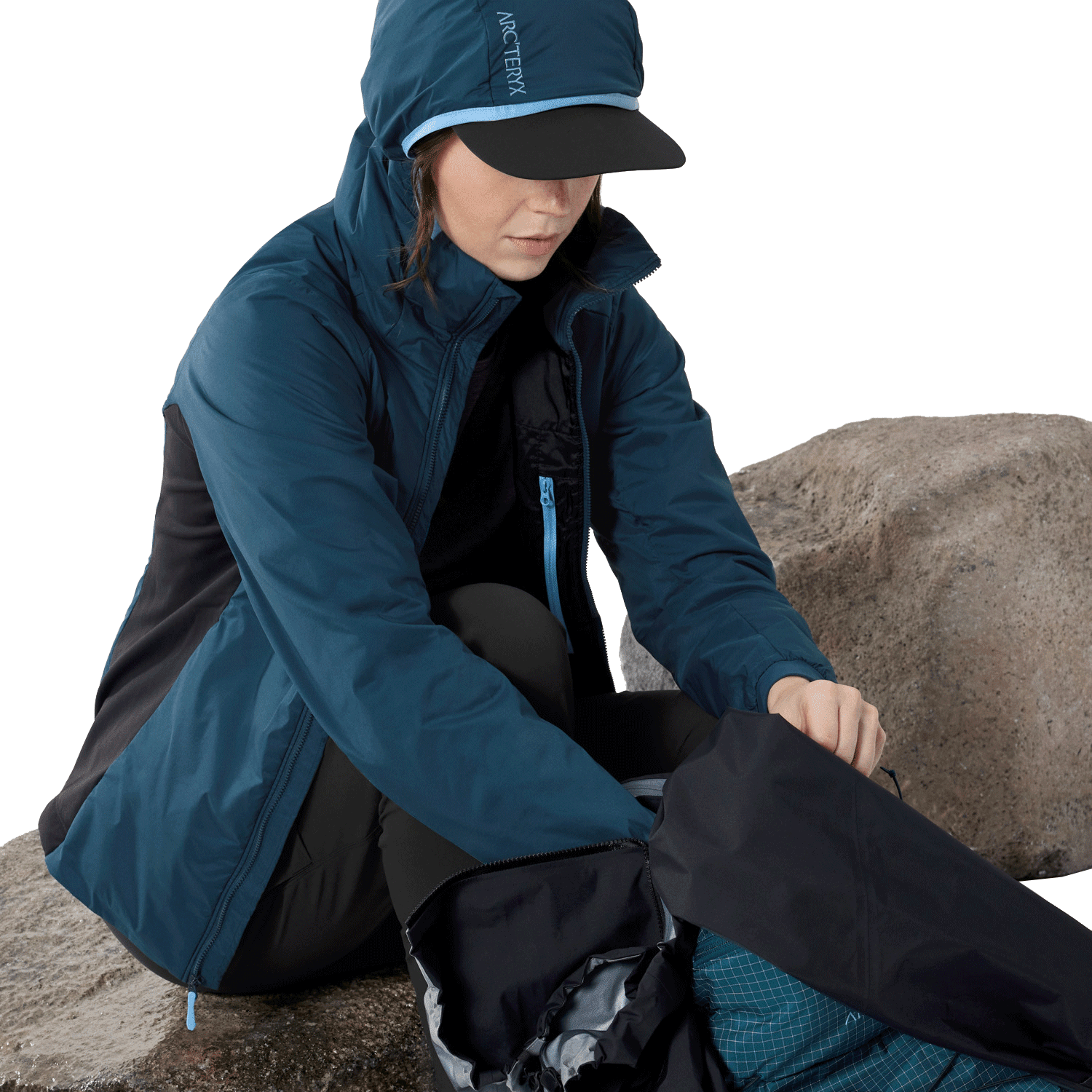 The women’s Atom Hoody balances fitted articulation with functional upgrades, including a roomier collar and sleeve openings for improved layering. An insulated StormHood™, FC0 DWR finish, and compact stowability keep it versatile across seasons, whether worn solo or as a midlayer.
