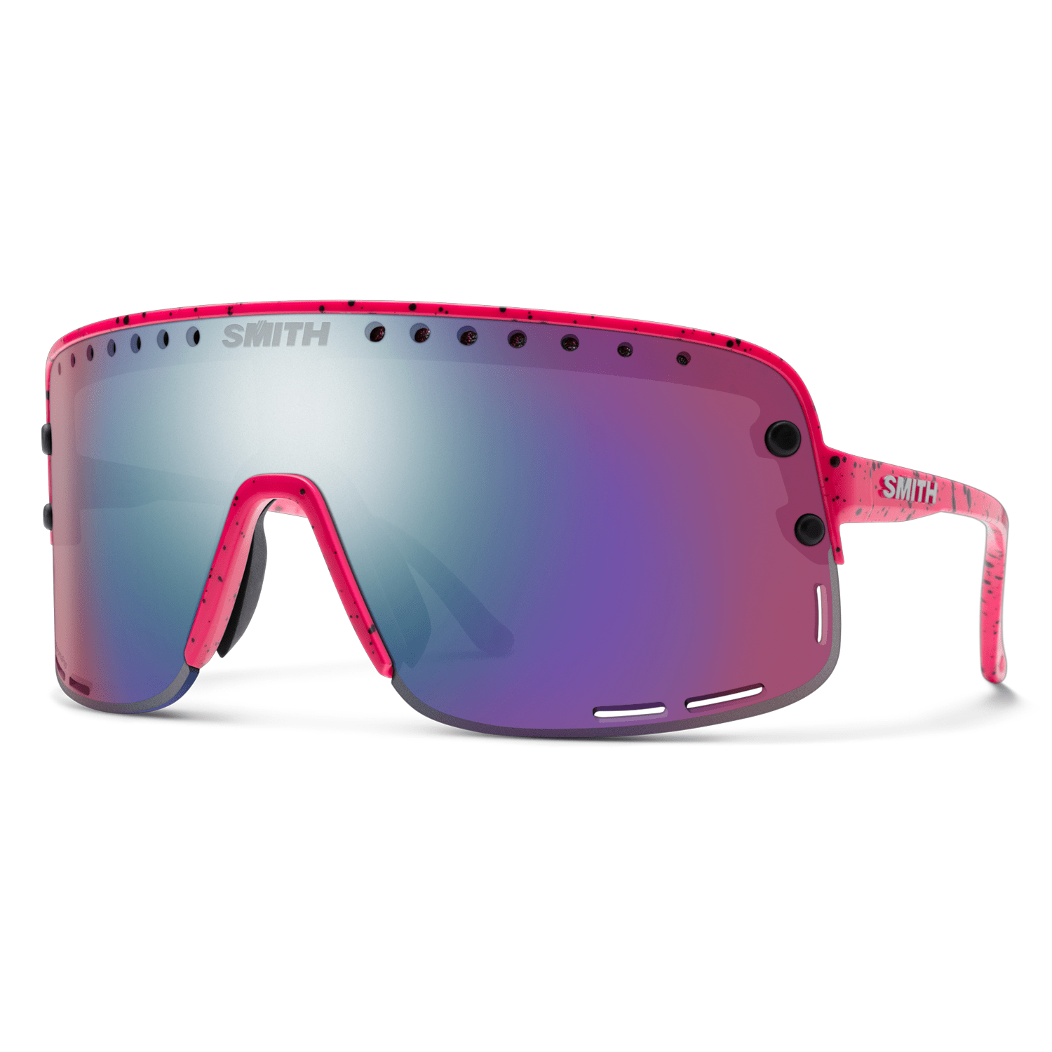 Smith Ultralite sunglasses combine a retro shield-lens silhouette with modern optical performance, featuring ChromaPop™ lenses for enhanced contrast, color accuracy, and full UV protection. Designed with a medium-to-large fit and a slight wraparound profile, the frame integrates adjustable Megol nose pads and strap-compatible temple tips for secure, all-day wear. Ventilation holes, smudge-resistant coatings, and AutoLock hinges add functional details that support both style and performance.