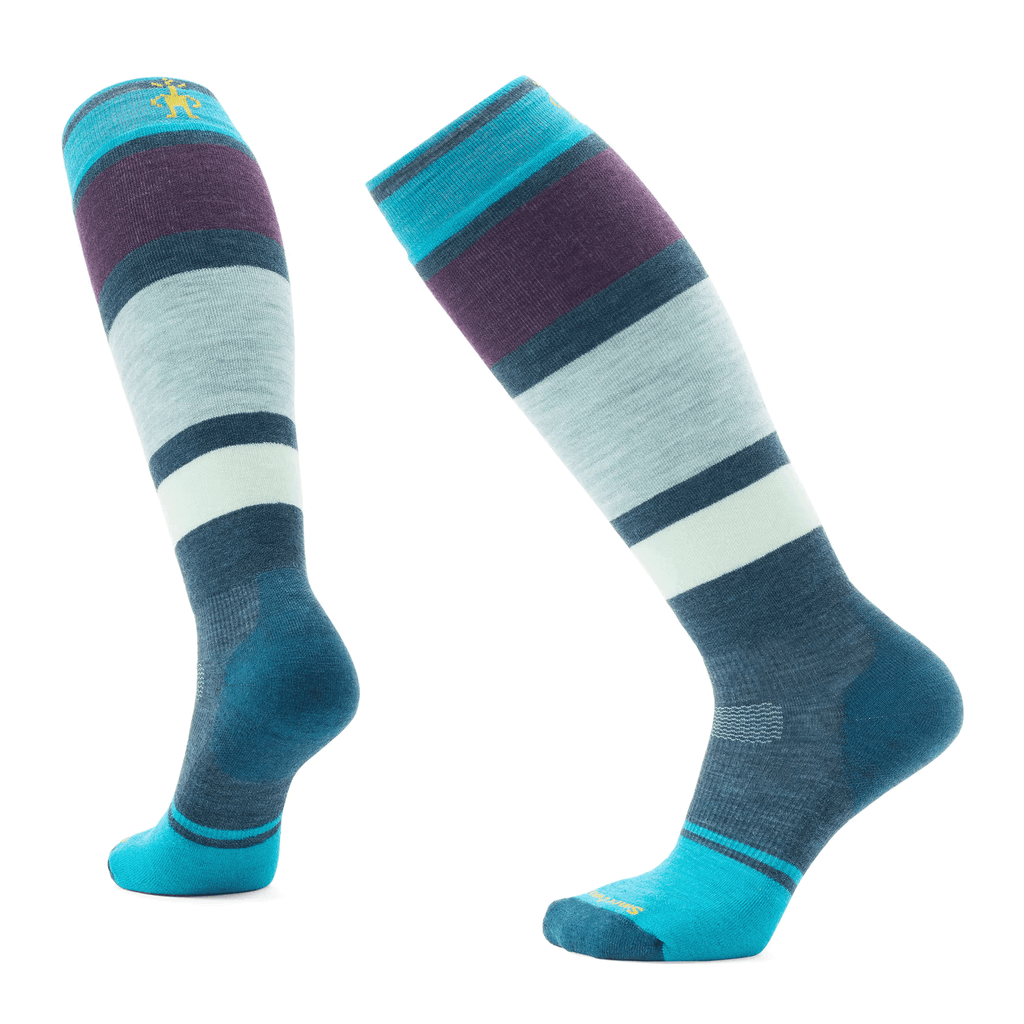 The Women's Snowboard Targeted Cushion OTC Sock combines durability and comfort for a superior snowboarding experience. Featuring advanced Indestructawool™ technology and the 4 Degree™ elite fit system, these socks offer a performance-oriented fit with added breathability from body-mapped mesh zones. The Virtually Seamless™ toe and over-the-calf height ensure all-day comfort while the stylish striped design keeps you looking as good as you feel on the slopes.