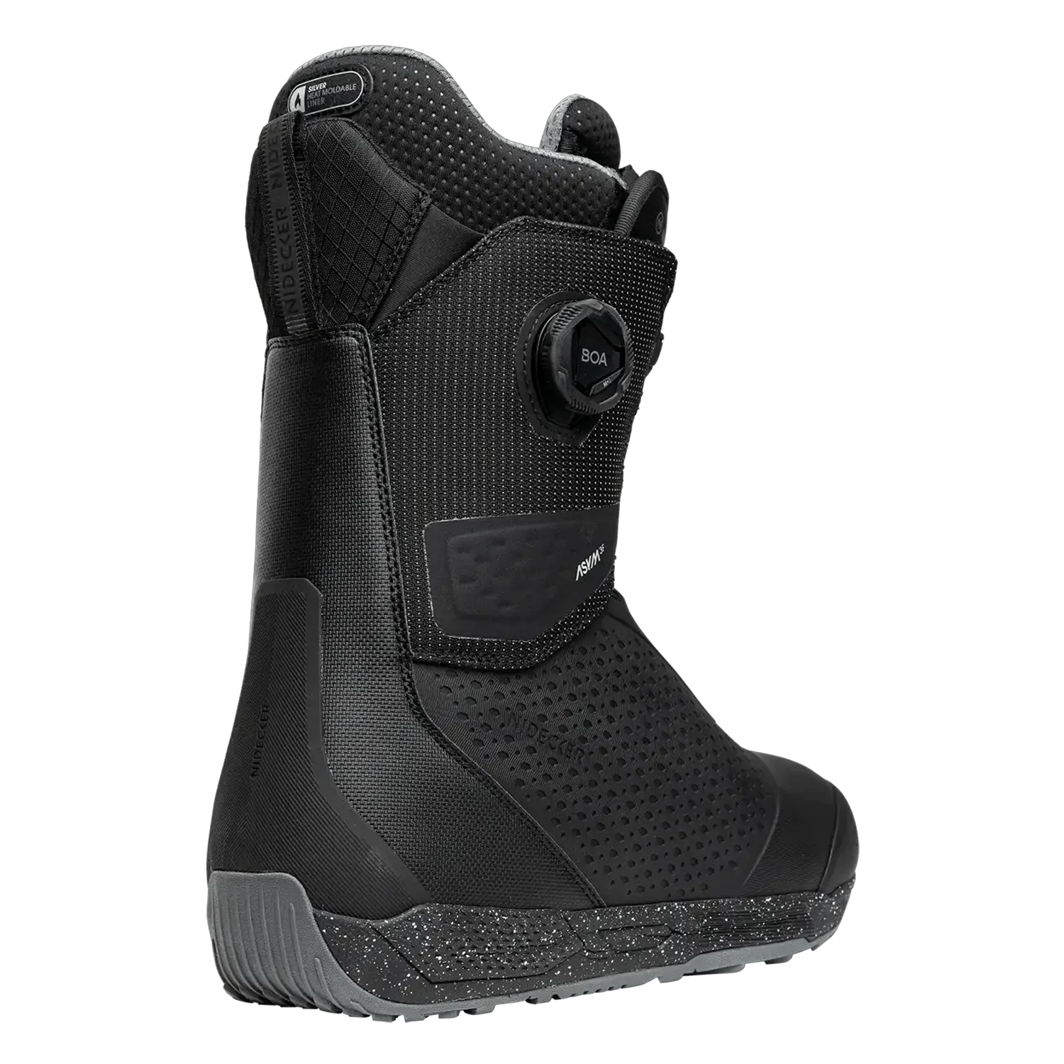 The Nidecker Rift Pro is an all-mountain/park snowboard boot with a mid-stiff flex rating engineered for precision and comfort. Dual BOA® H4 Coiler dials allow micro-adjustable zonal tightening, while the Silver heat-moldable liner with 3D Liner Support ensures secure heel hold and customized fit. Exclusive features such as the Exo Spine with Transition Zone enhance energy transfer and durability, while OC-Kush foam and the OrthoLite® X35 insole deliver superior shock absorption and foot support. A seamless KPU lower shell with Armor-Tech toe increases abrasion resistance and waterproofing, and the Surface outsole provides reliable grip and cushioning for mixed terrain.