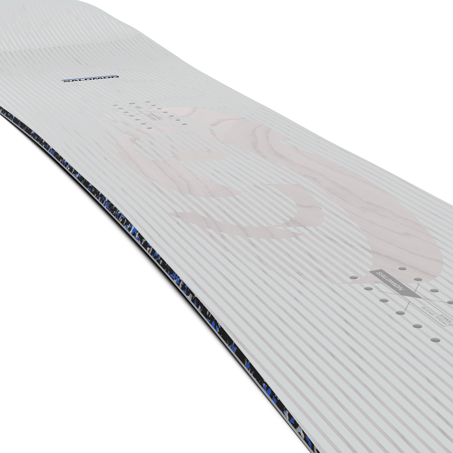 The Salomon Jetstream Snowboard is a freeride-focused, tapered directional board designed for all-mountain versatility, featuring Rock Out Camber and a progressive flex for responsive edge-to-edge transitions. Its 50% recycled sintered base, Popster-milled core, and Ghost Carbon Beam + deliver controlled pop and precise energy transfer, while Biax MD fiberglass ensures consistent torsional response. A wider waist, setback stance, and radial sidecut enhance float in powder and stability on groomers, with a lightweight, eco-conscious construction including recycled ABS sidewalls, bio-based resins, and an FSC-certified wood core. The Jetstream supports various binding systems for adjustable stance setups.