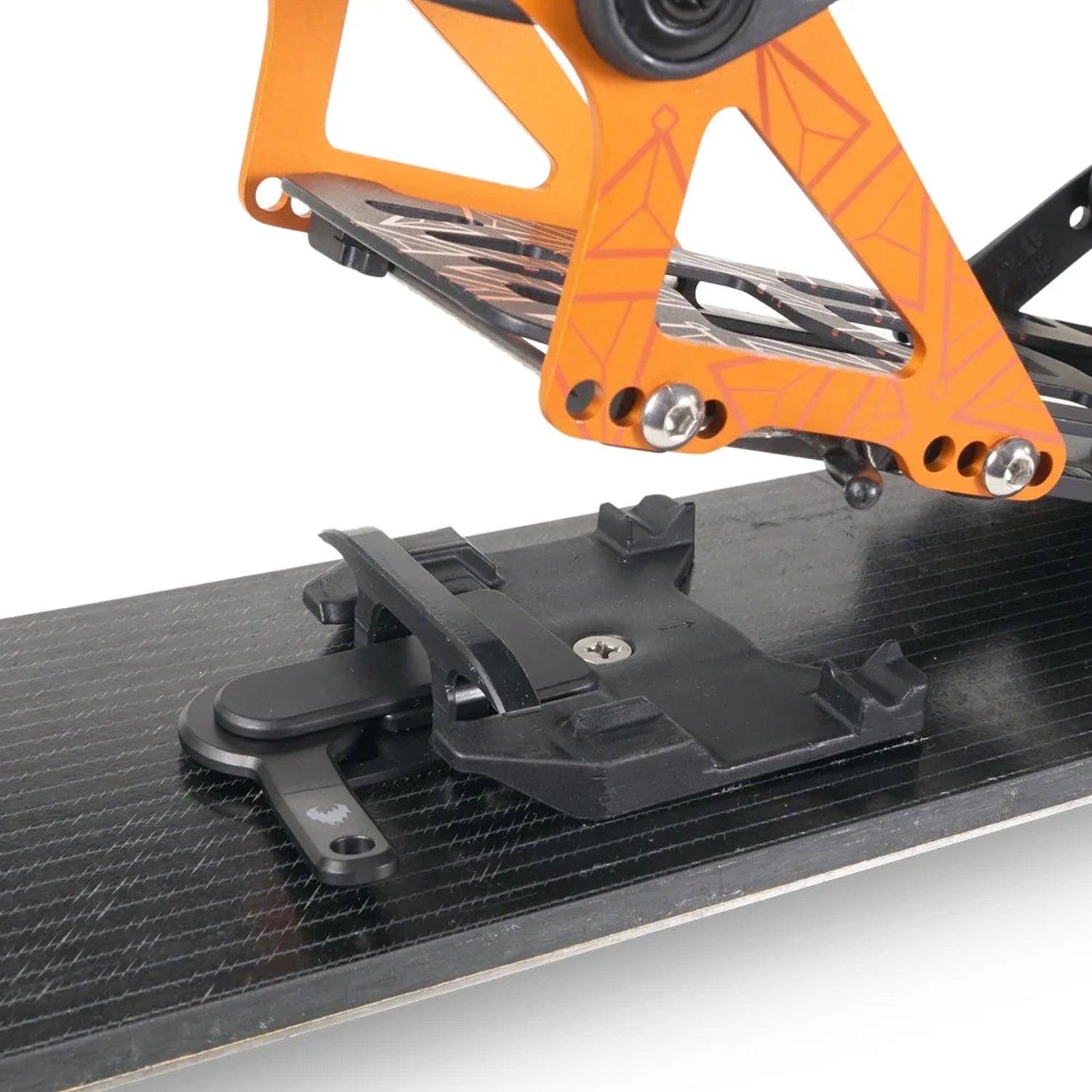 - Easy Lock: Rotate the lever from left to right to lock the binding down. The lever should rotate easily and you should feel it engage into both locked and unlocked positions. Lock bar grabs underneath the baseplate.