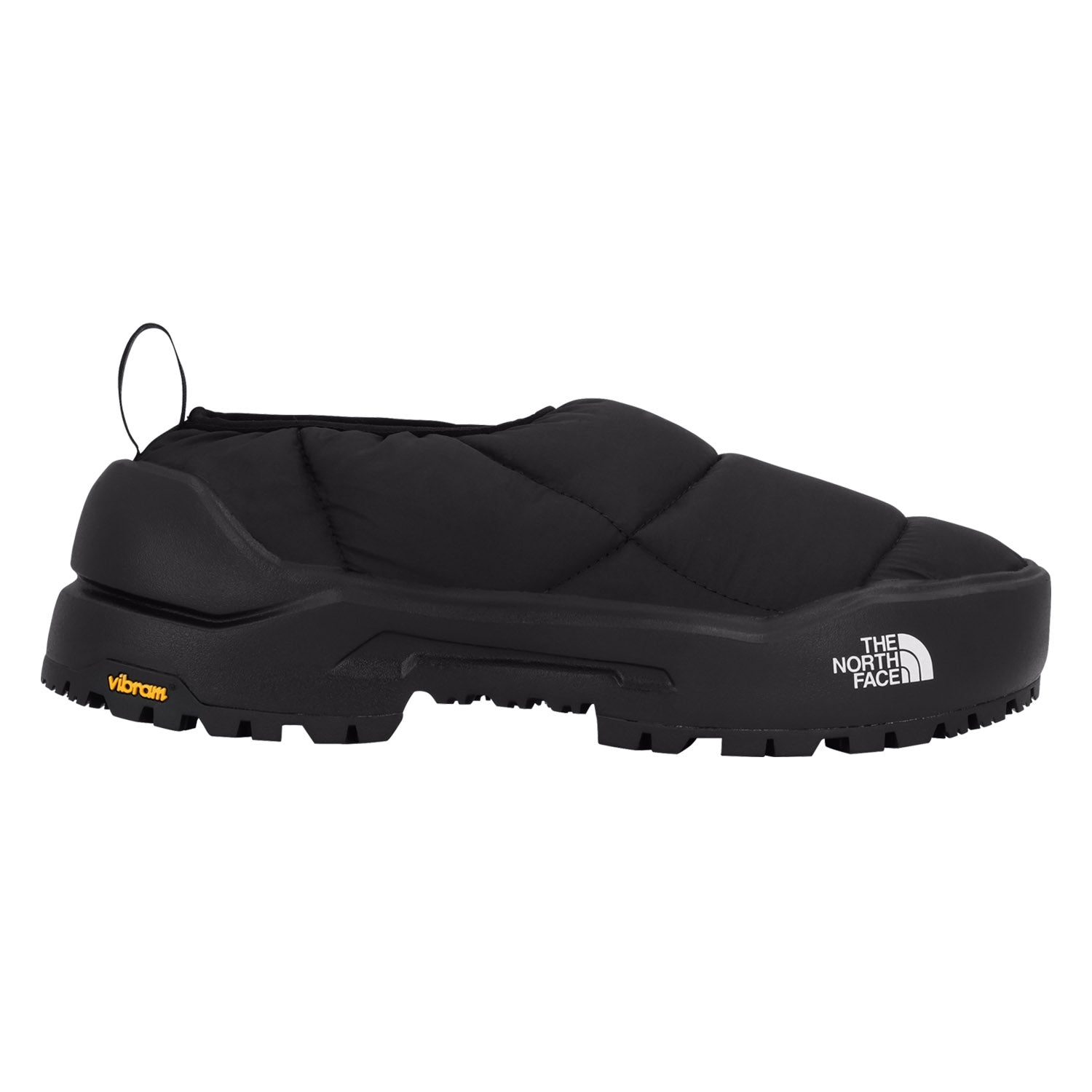 Recovery starts the moment you step out of your boots, and this all-black version of the Base Camp ThermoBall™ Mule is made to deliver comfort without compromise. Designed with both downtime and daily life in mind, it features a rugged Vibram® outsole that provides reliable traction on slick sidewalks, snowy trails, and everything in between. The upper, crafted from 100% recycled P.E.T. ripstop and finished with a non-PFC durable water-repellent coating, helps shield your feet from light moisture while keeping the weight down. Inside, ThermoBall™ Eco insulation—made from recycled polyester—offers dependable warmth, even when wet, while the soft fleece lining wraps your feet in cozy comfort. Sleek, packable, and versatile, the TNF Black colorway adds a clean, modern look to a mule that’s as functional as it is comfortable.