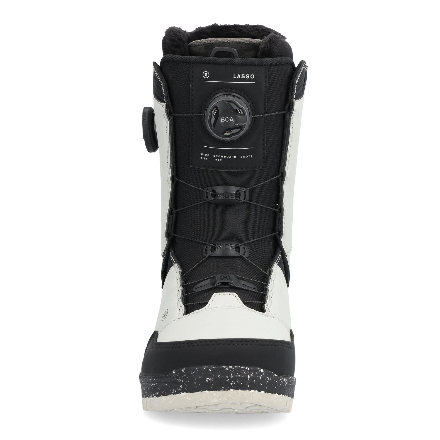 - TONGUE TIED™: This RIDE specific technology offers a secure fit in the ankle zone and eliminates the need for a traditional harness. The tongue integrated Boa® guides provide total tongue closure and next level heel hold without the potential pressure points. Depending on the model, Tongue Tied™ is paired with traditional lace, Boa® Focus, or Boa® Coiler Closure Systems.