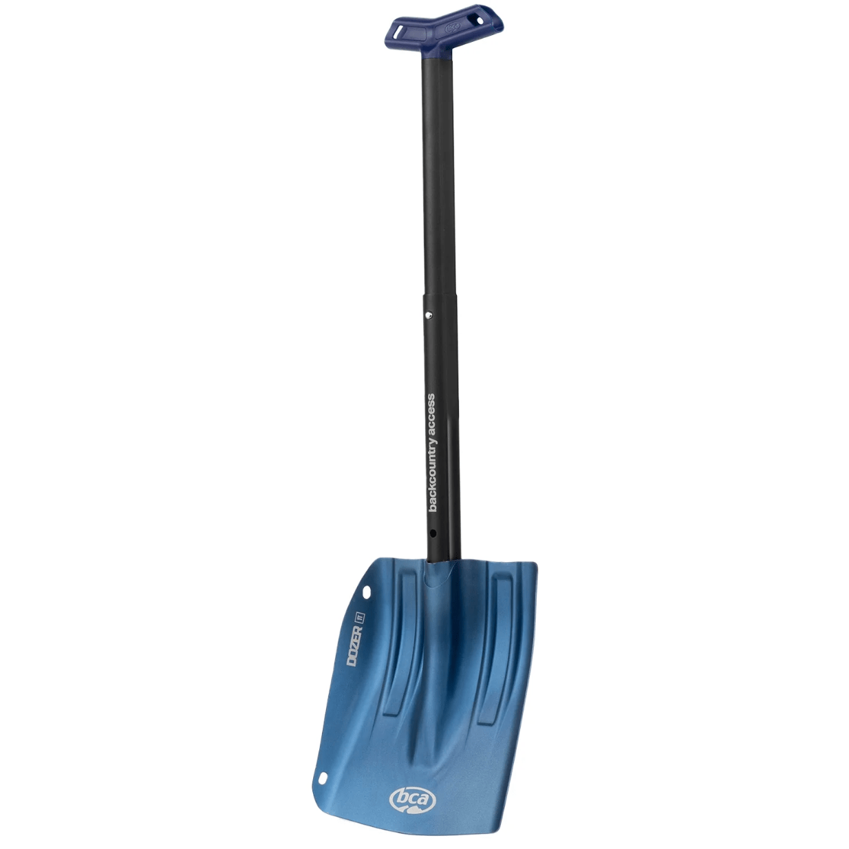 All of BCA's new Dozer shovels feature ovo-concave shafts and low-profile, "stompable" blades. The front third of the shovel blade offers a smooth surface for clean snowpit walls during snow stability tests. With BCA's flat "stomp edge" on the blade, you can penetrate just about anything by adding body weight. Auto-engaging spring pins at the blade/shaft connection make for faster, hands-free assembly/deployment. BCA shovels lie flat in your pack with no protruding ferrule or "neck," leaving more room for other backcountry gear. All BCA extendable shovels are designed to meet the UIAA standard for avalanche rescue shovels.