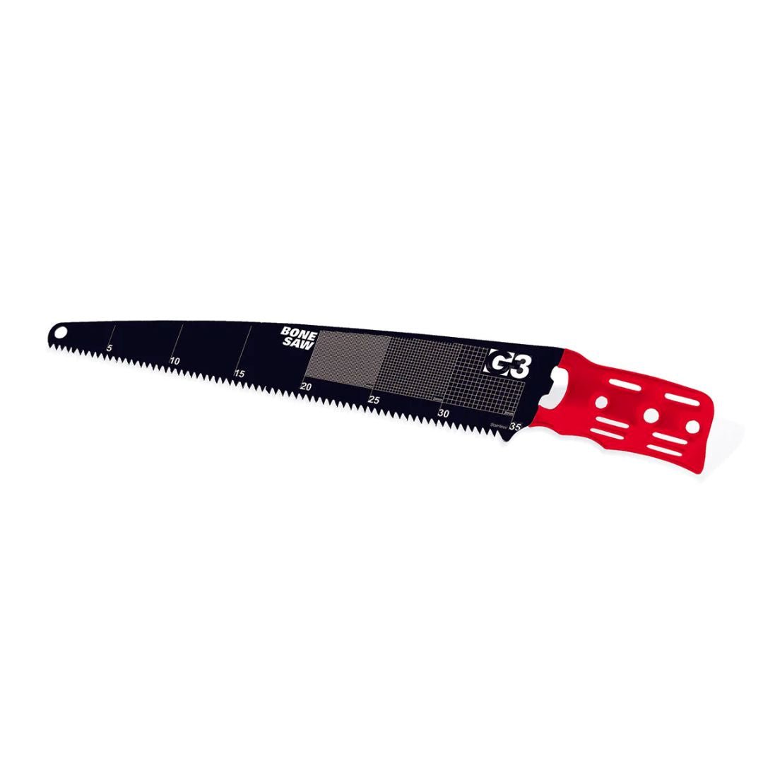 The G3 Bonesaw is streamlined, packable, lightweight, easily extendable and tough enough to cut through bone, wood, and ice. It features slots for easy attachment to your ski pole or shovel shaft and includes a lightweight nylon sheath and a 400 mm Tension Strap. Made with hardened stainless steel.