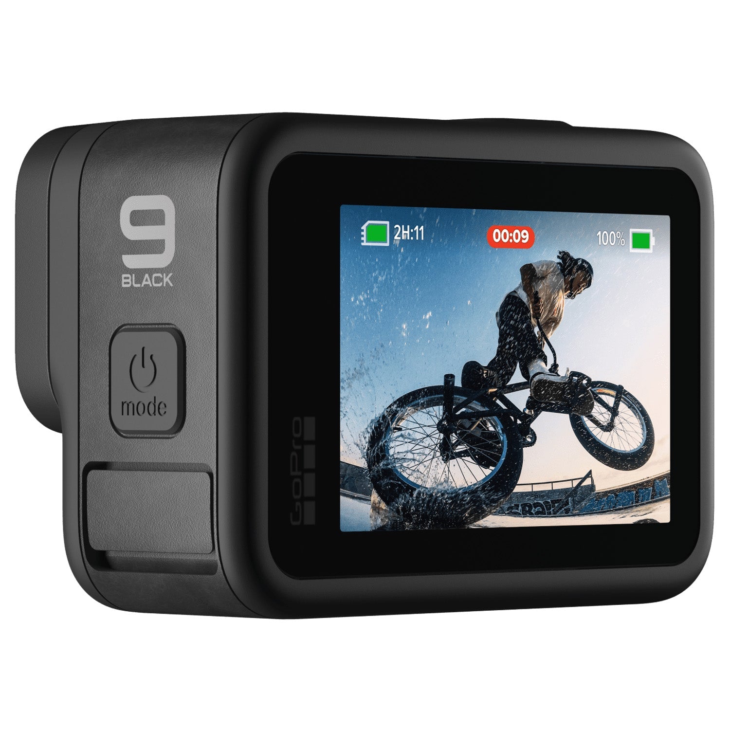 - Includes HERO9 Black camera, carrying case, rechargeable battery, curved adhesive mount, mounting buckle + thumb screw, USB-C cable and free SD card.