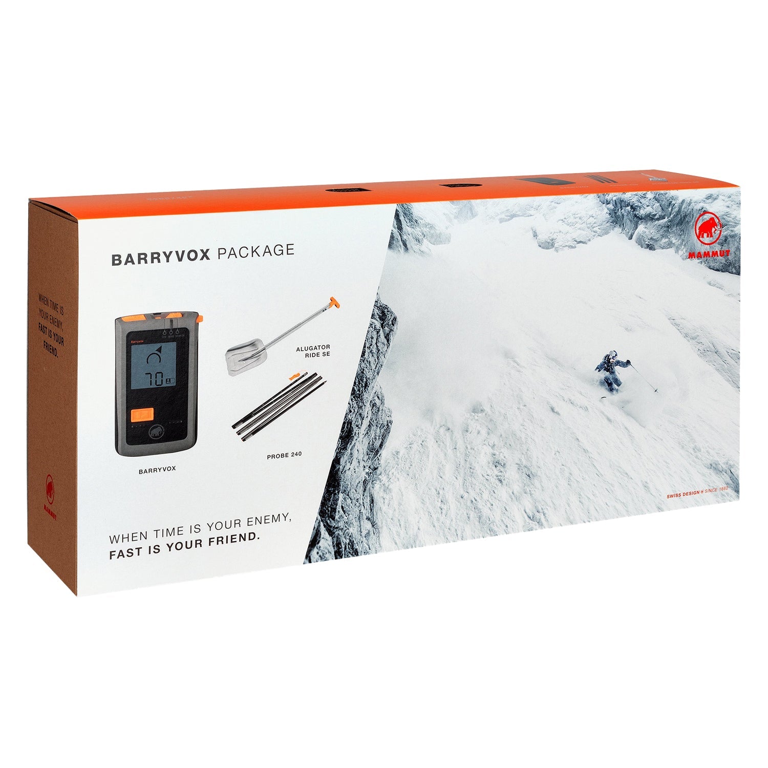 The Barryvox® Package includes all the avalanche equipment you need for freeriding, off-piste runs or ski touring: inside, you will find the Barryvox® avalanche transceiver, the light avalanche Probe 240 and the Alugator Ride shovel. The digital 3-antenna Barryvox® avalanche transceiver is distinguished by its extremely simple operation and clear instructions. The aluminum Probe 240 is safe and easy to use, even when wearing gloves. And the packing volume is reduced to the minimum with the small, compact Alugator Ride avalanche shovel, which features a blade made of hardened, anodized aluminum. This set forms the basis of standard safety equipment for freeriders or ski tourers.