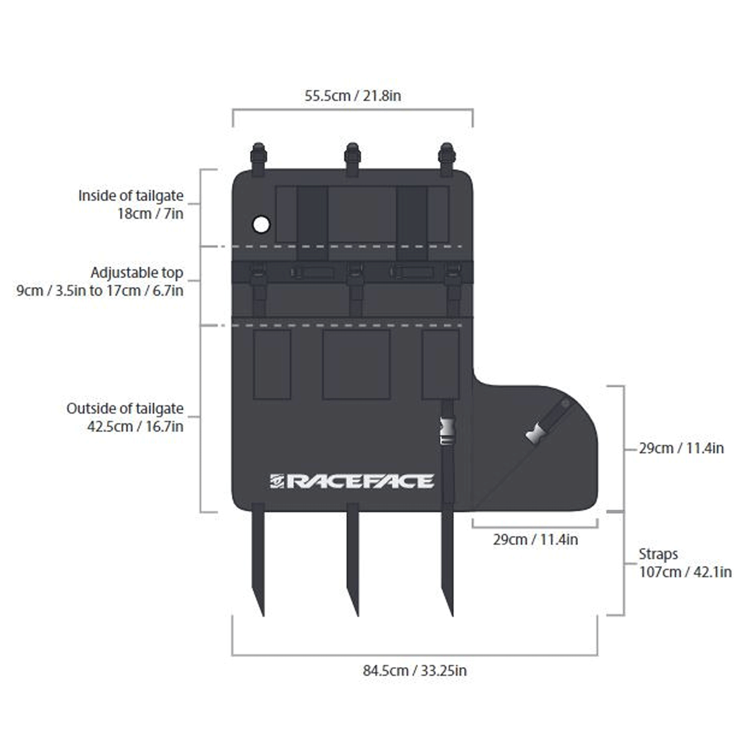 - Adjustment: Top edge adjustment allows for custom fit to both flat and curved tailgate edges.