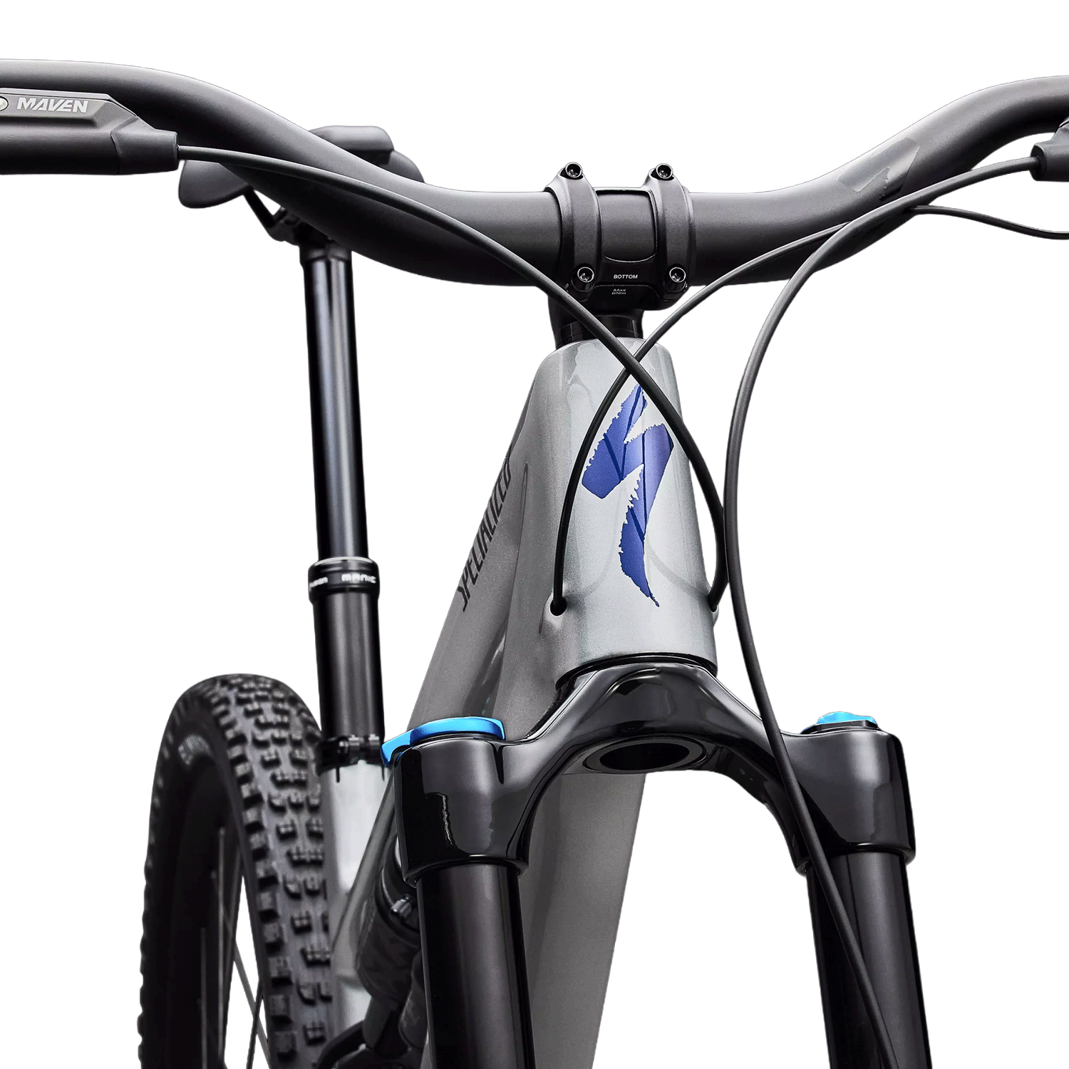 - Wheel and Tire System: Specialized hookless alloy rims with 30mm inner width, paired with Butcher 29x2.4 front tire and Eliminator rear tire in 27.5x2.4 or 29x2.4 depending on size.
