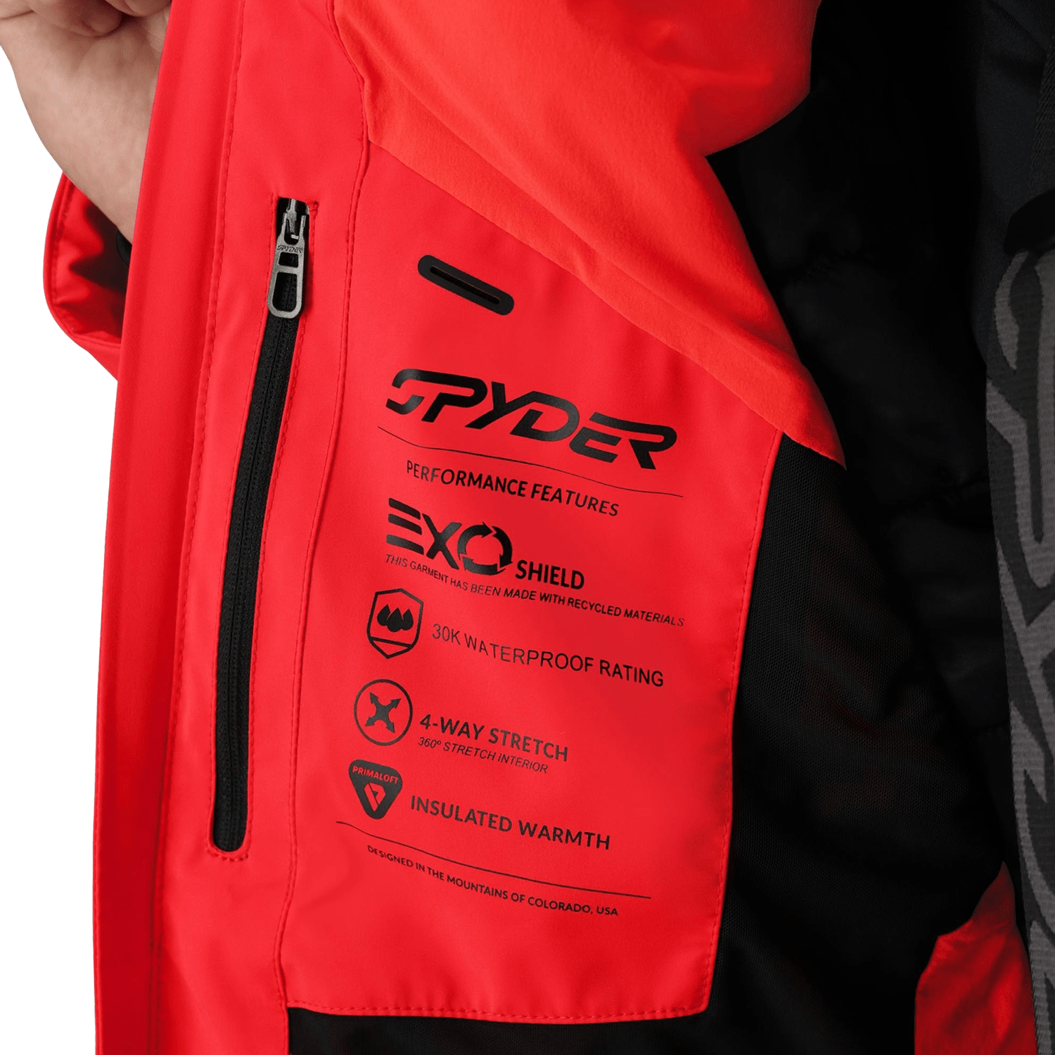 Lightweight PrimaLoft® Silver ECO insulation (60g) balances warmth and breathability, while underarm vents manage heat during high-output runs. A RECCO® Avalanche Rescue System, removable helmet-compatible hood, and stretch interior ensure confident comfort from groomers to back bowls.