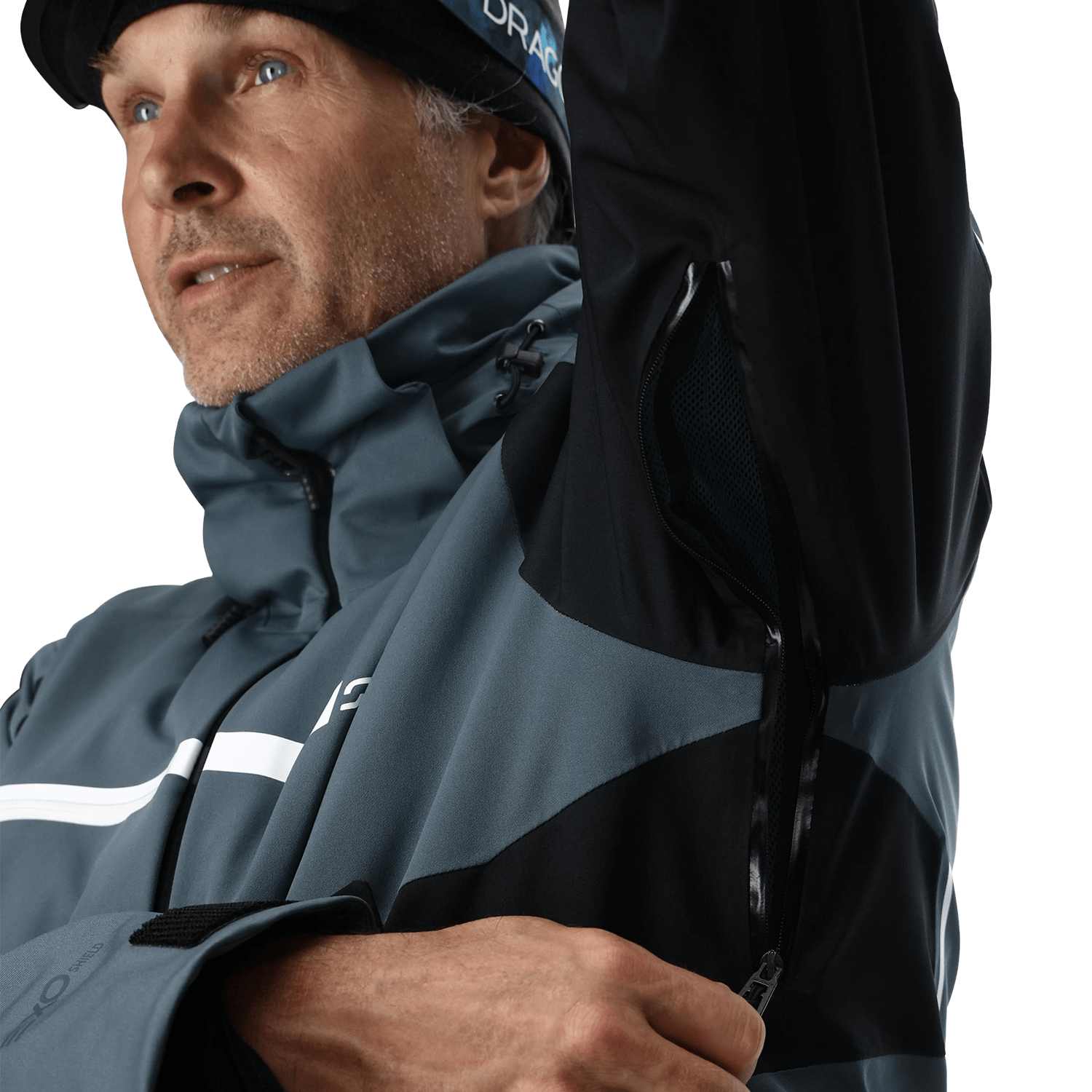 - Ventilation: Underarm vent system with YKK® AquaGuard® zippers