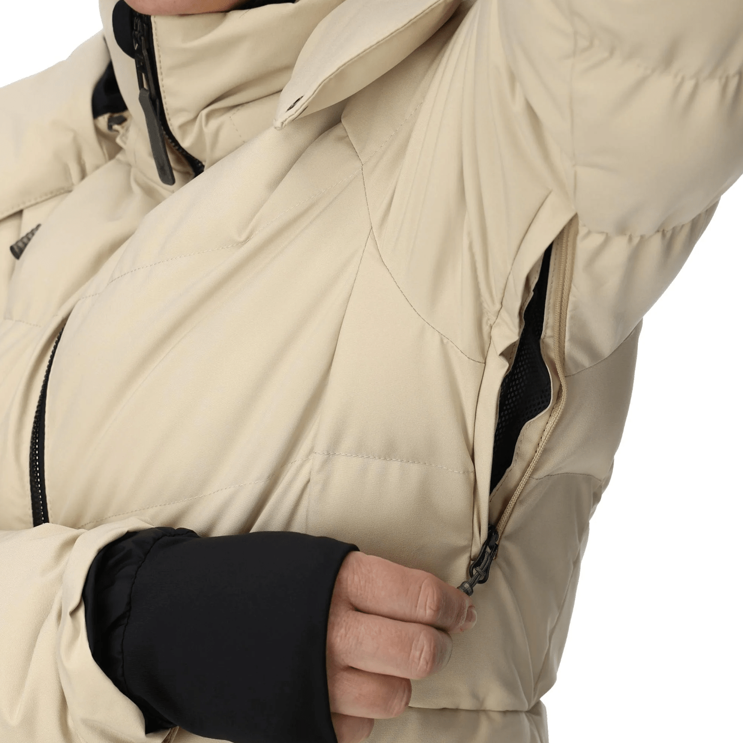 - Cuffs: Adjustable tabs with interior stretch cuffs and thumbholes