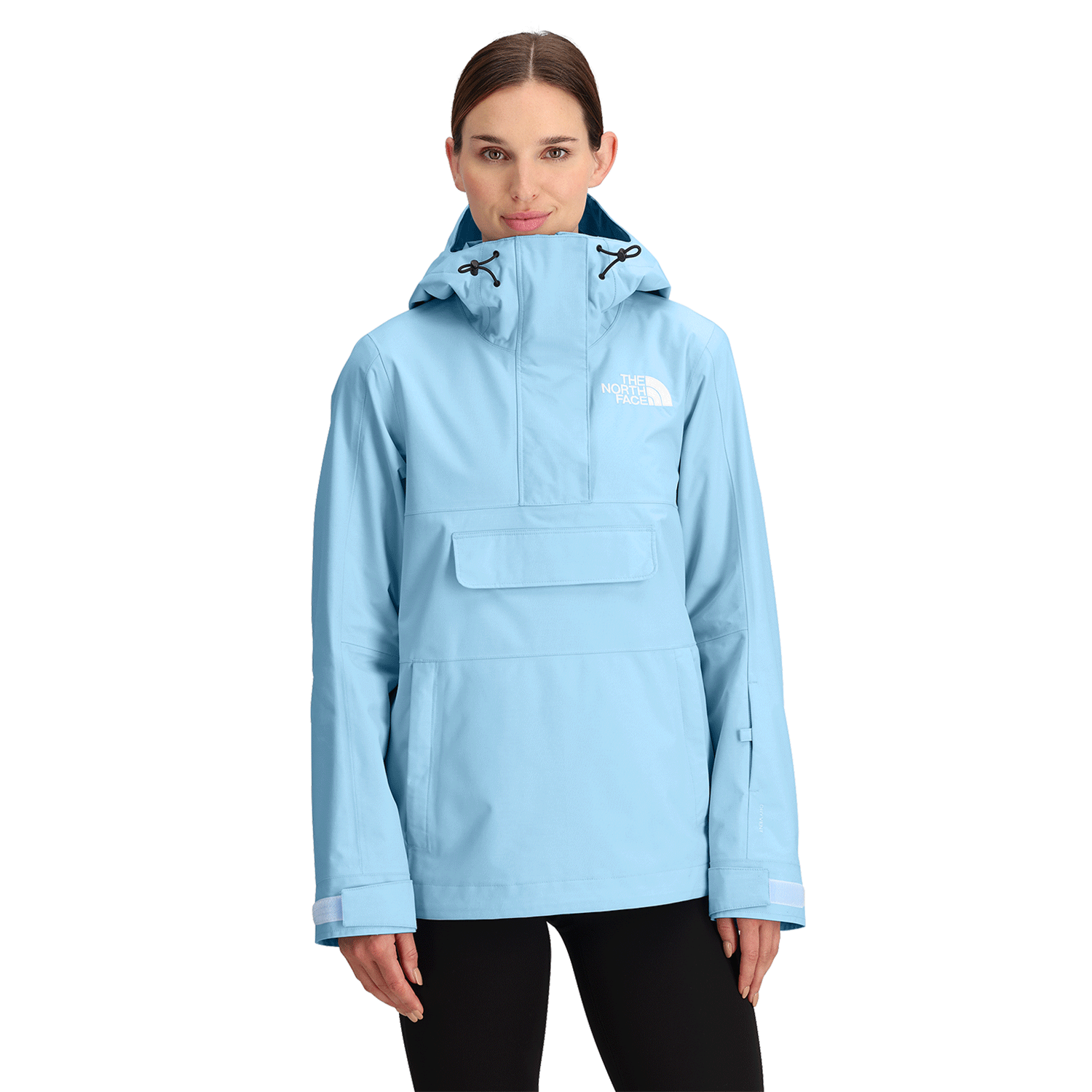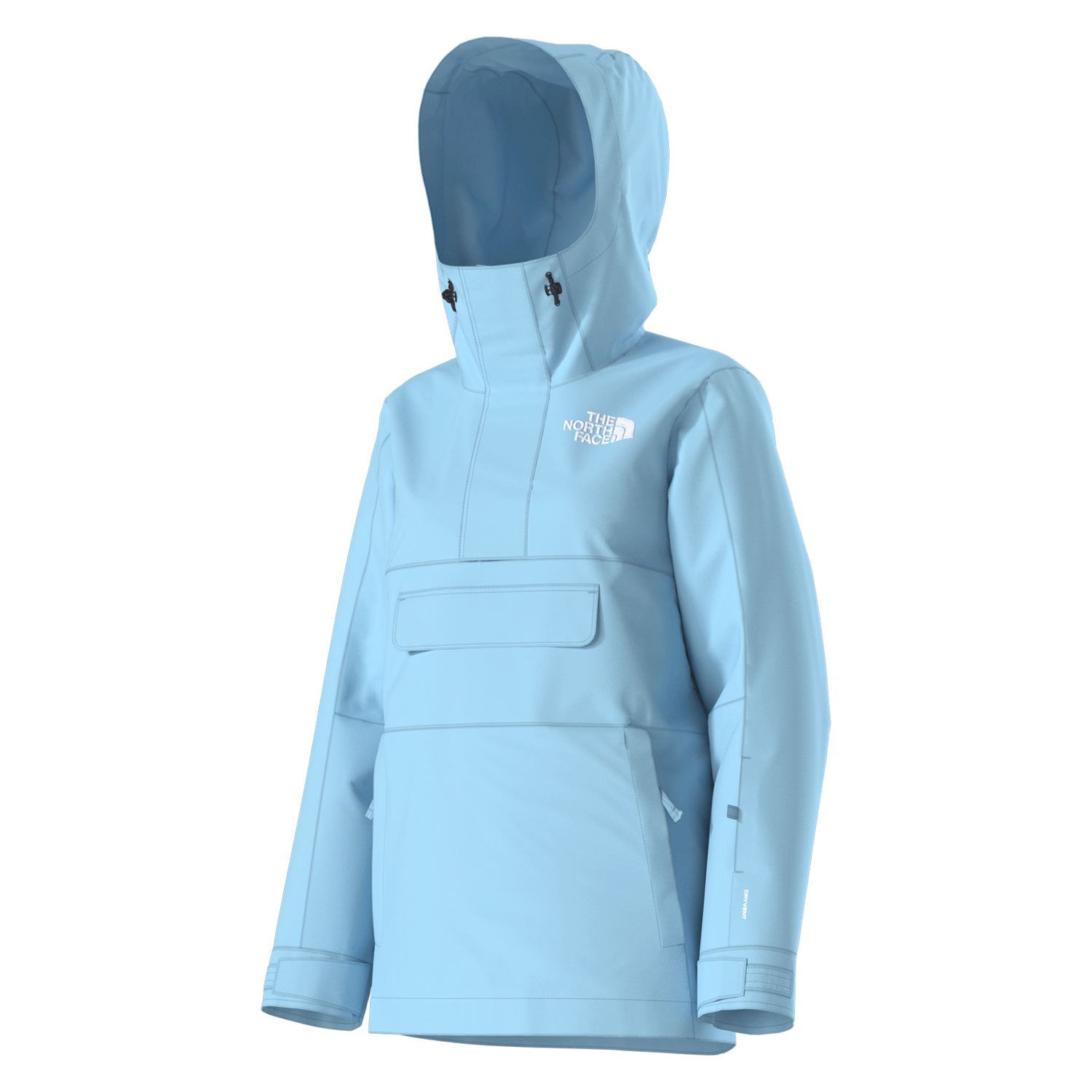 The North Face Women's Driftview Anorak offers dependable protection with a DryVent™ 2L shell that is waterproof, windproof, and breathable, featuring a non-PFC DWR finish. Designed for mountain versatility, it includes a helmet-compatible hood, underarm vents for airflow, and multiple secure pockets, including a snap-closure wrist pocket for convenience. The adjustable cuffs and hem provide a customizable fit, ensuring comfort and performance during alpine adventures.